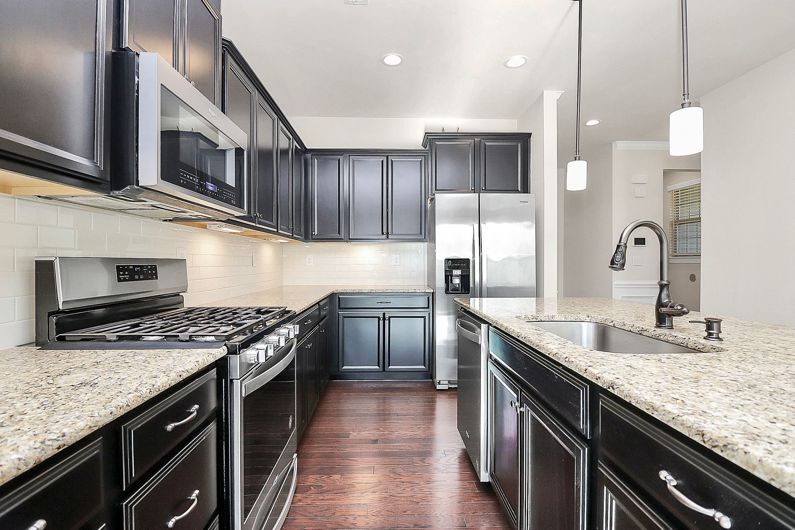 This gorgeous 3 bedroom, 2.5 bathroom townhome includes a two car garage and ample storage throughout. The kitchen features stainless steel appliances, a gas range, quartz countertops, a central island, and a breakfast bar for casual dining. Upstairs, a spacious den offers flexible space for lounging, a second living area, or whatever suits your needs. The primary bedroom includes an en suite bathroom with dual vanities, an enclosed shower, and a large walk in closet. Two additional bedrooms share a full bathroom, offering flexibility for guests or home office use. A washer and dryer are conveniently located upstairs.